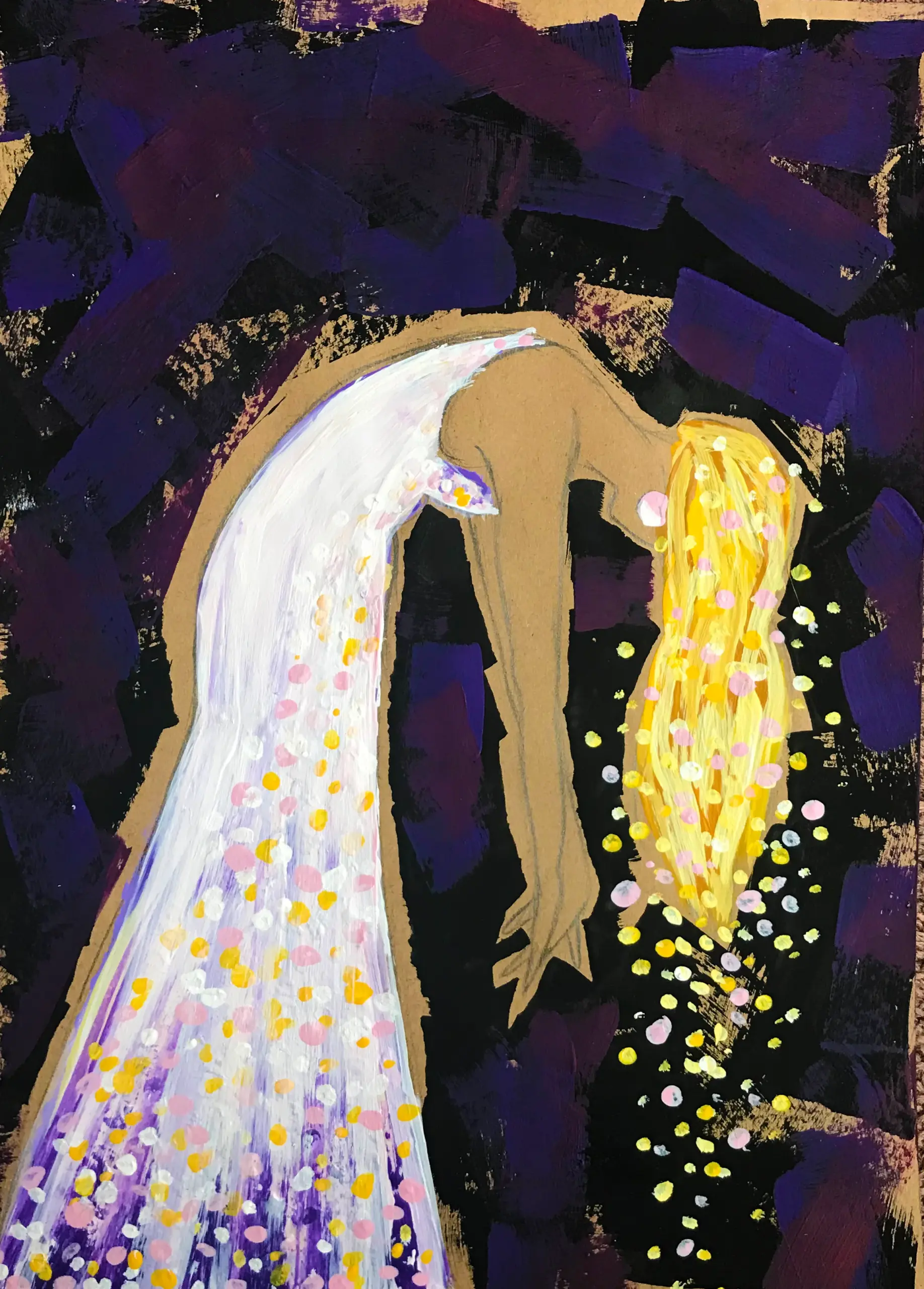 Acryl, Kreide, Bleistift auf fester Pappe A4 „Energie“